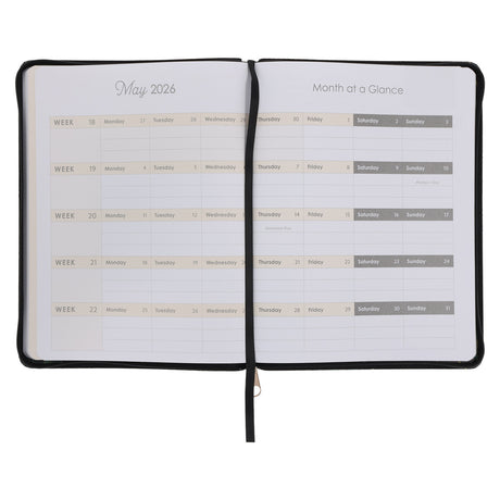 2026 Diary - 18-Month Planner for Women - In Strength and Dignity - Faux Leather with Zip