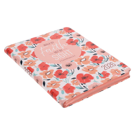 2026 Diary - 18-Month Planner for Women - Walk by Faith Not by Sight - Faux Leather with Zip