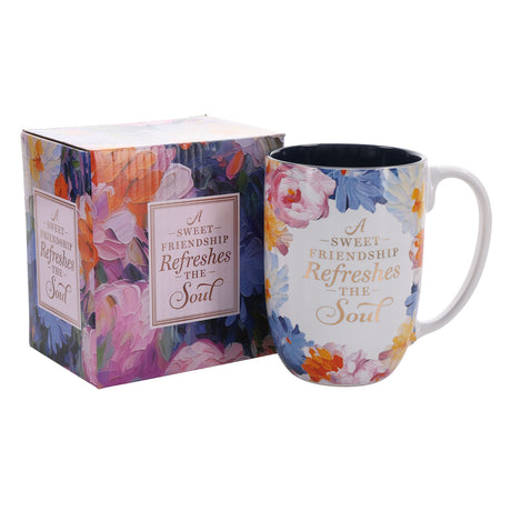 A Sweet Friendship Refreshes the Soul Painted Floral Ceramic Mug