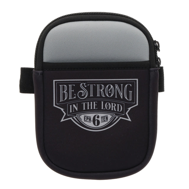 Store your belongings while you're on the move with the Be Strong in the Lord Travel Tumbler Pouch. With it's zipped closure you can easily store earphones, keys, money, cards - any small necessities required, that might get in the way or mislaid.