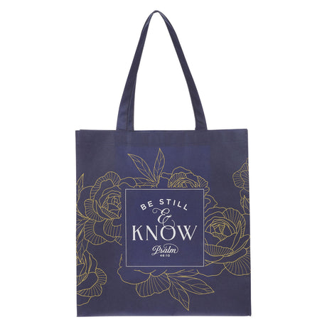 In stockSale price R79.20 Regular price R99.00Unit price /Unavailable Be Still and Know Navy Non-Woven Tote Bag