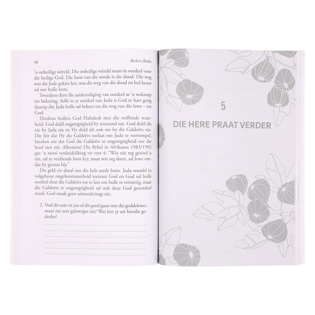 Al sou die vyeboom nie bot nie bied die hele Habakuk uit die Nuwe Lewende Vertaling. Die onderafdelings word sinvol verdeel en bespreek. Daar is ook ruimte vir lesers om hul eie weergawe van Habakuk 3:17-19 neer te skryf.