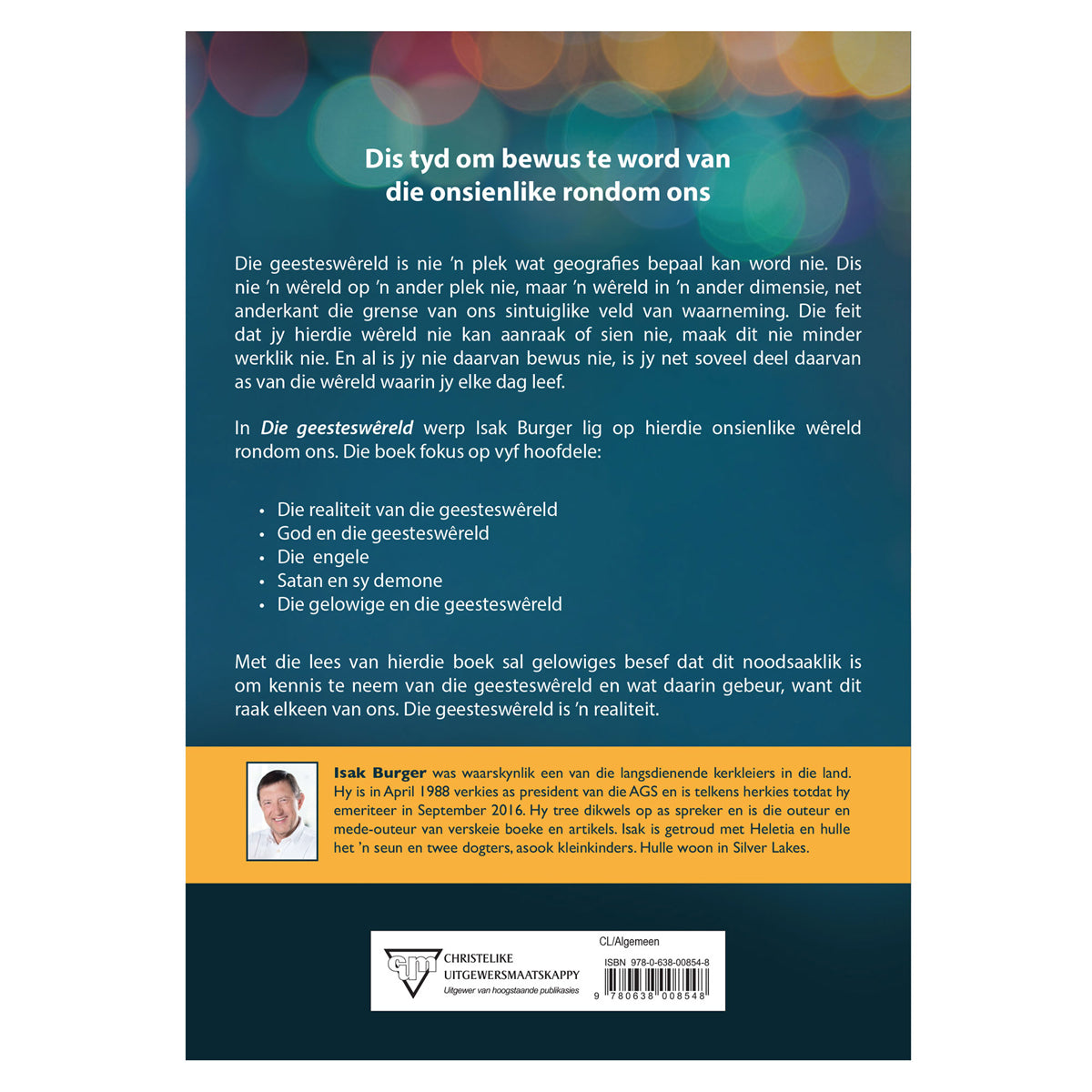 In Die Geesteswêreld: Ontdek die Realiteit van die Onsienlike Wêreld Rondom Ons werp Isak Burger lig op hierdie onsienlike wêreld rondom ons. Hy fokus op vyf hoofdele: