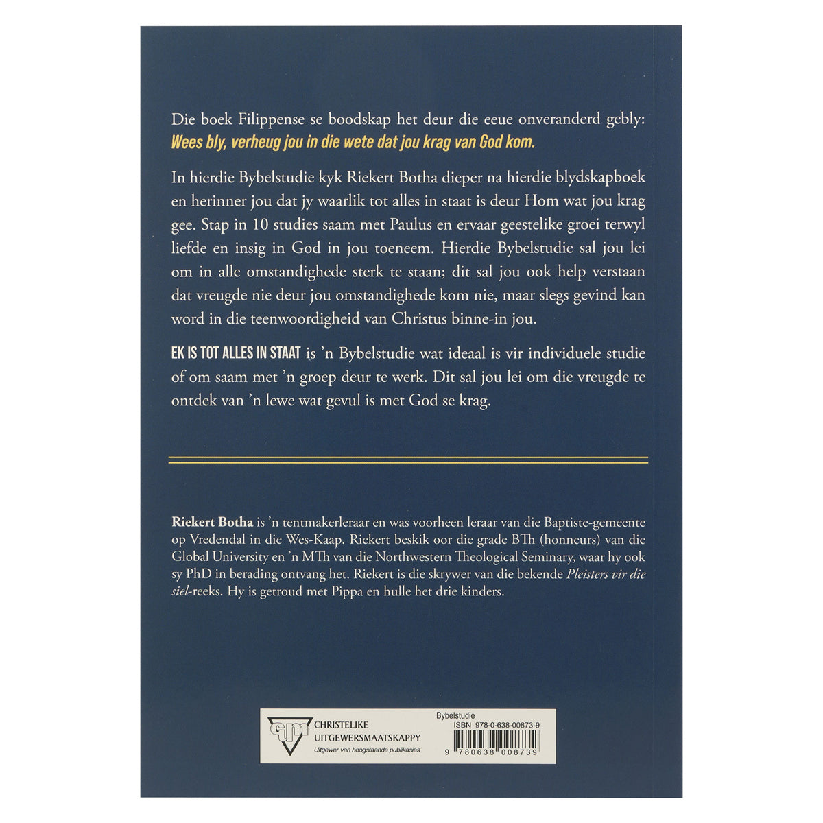 Groot gedeeltes Bybelteks uit die NLV in Ek is tot alles in staat sorg vir maklike naslaan.