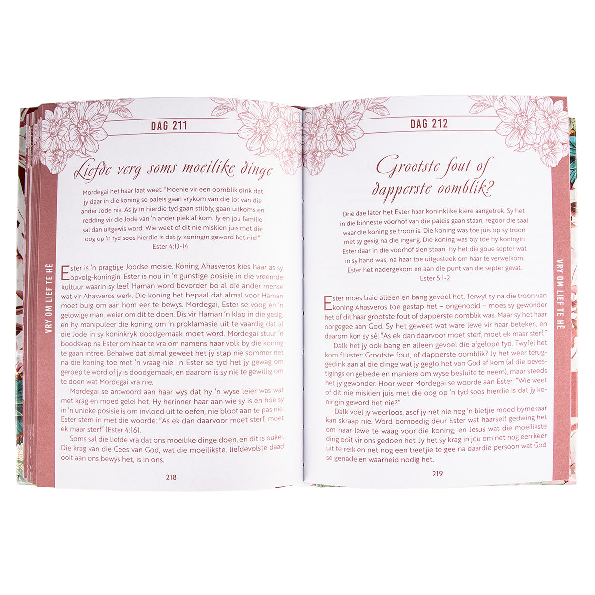 Dag een tot vyf bevat ’n Skrifgedeelte en oordenking, terwyl dag ses vrae bevat oor die voorafgaande vyf dae se dagstukke. Dit kan vir persoonlike of groepstudie gebruik word. Dag sewe fokus daarop om hierdie waarhede in jou lewe toe te pas deur gebed of jou eie dagboekinskrywings.