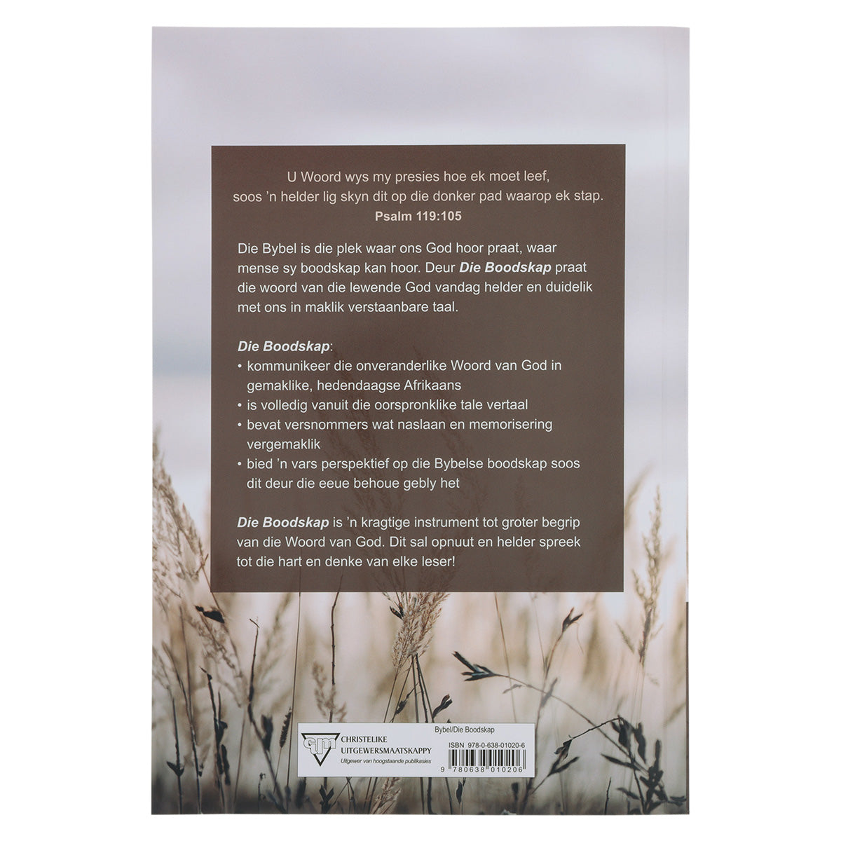 Die Bybel is die plek waar ons God hoor praat, waar mense sy boodskap kan hoor. Deur Die Boodskap praat die woord van die lewende God vandag helder en duidelik met ons in maklik verstaanbare taal.