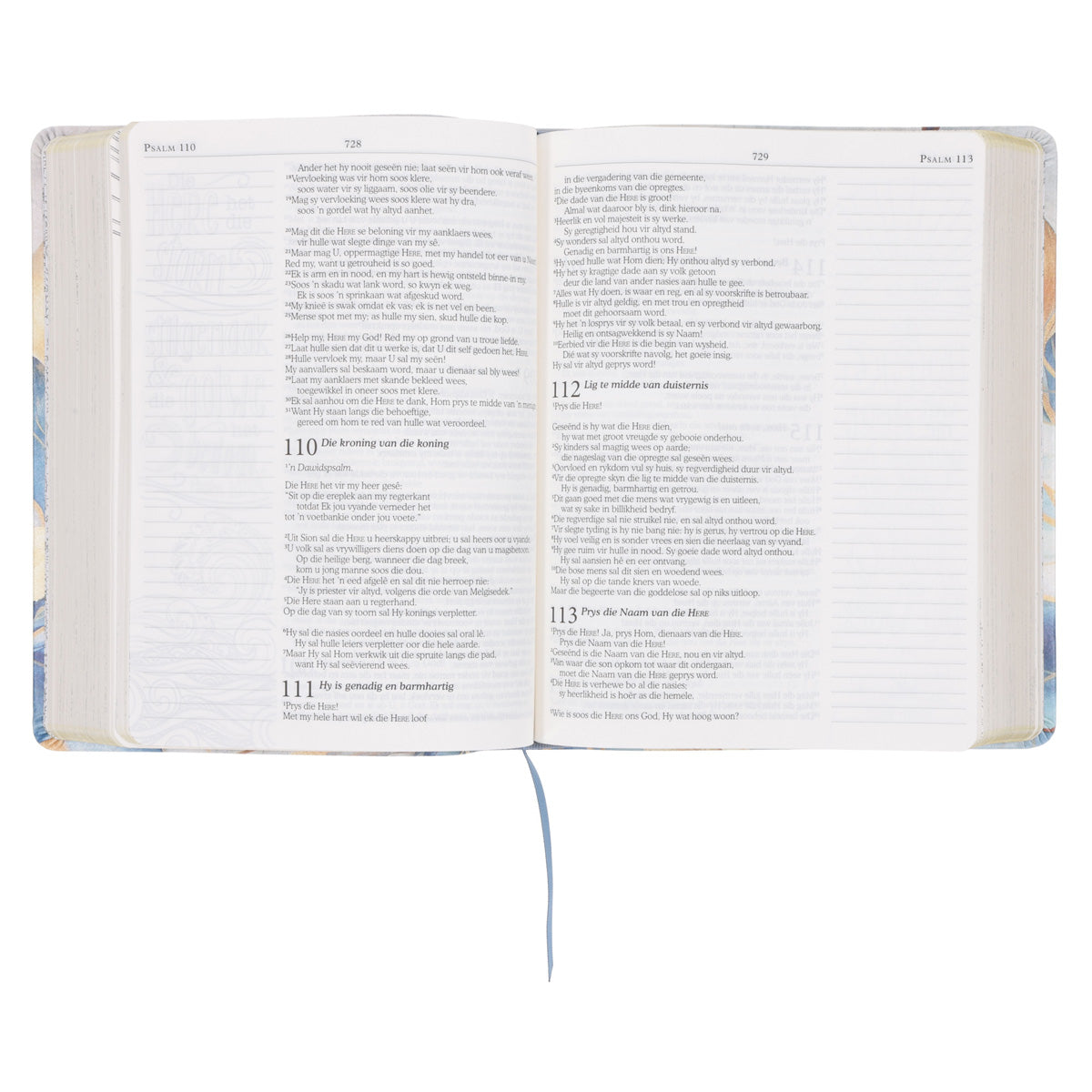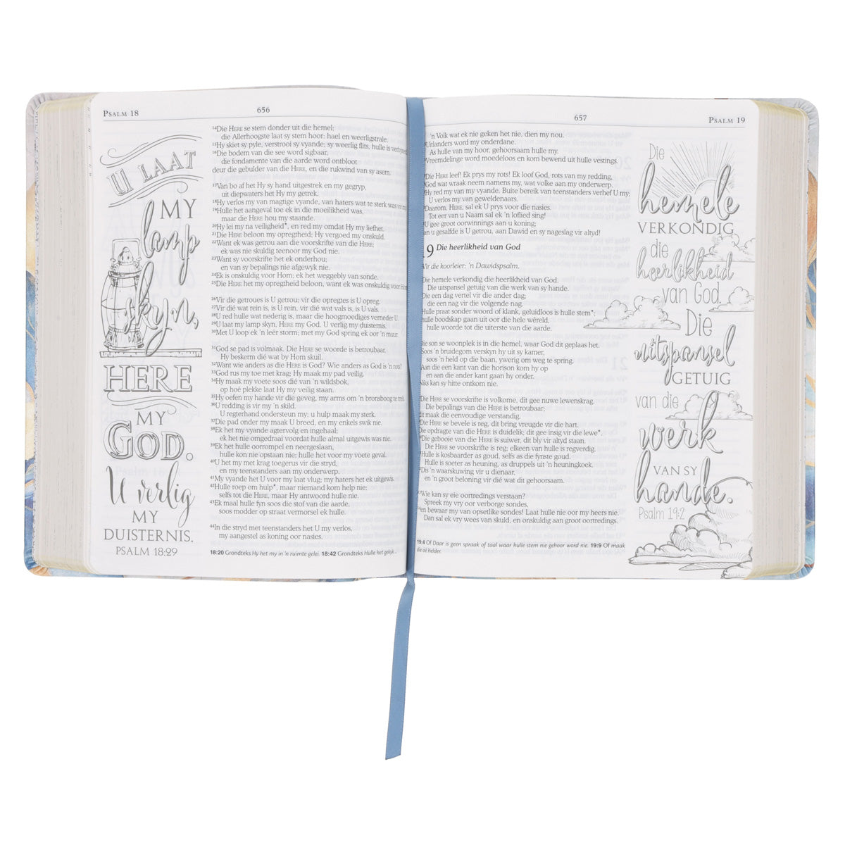 - Breë kantlyne met lyntjies spesiaal vir gedagtes, gebede, notas en ander persoonlike inskrywings