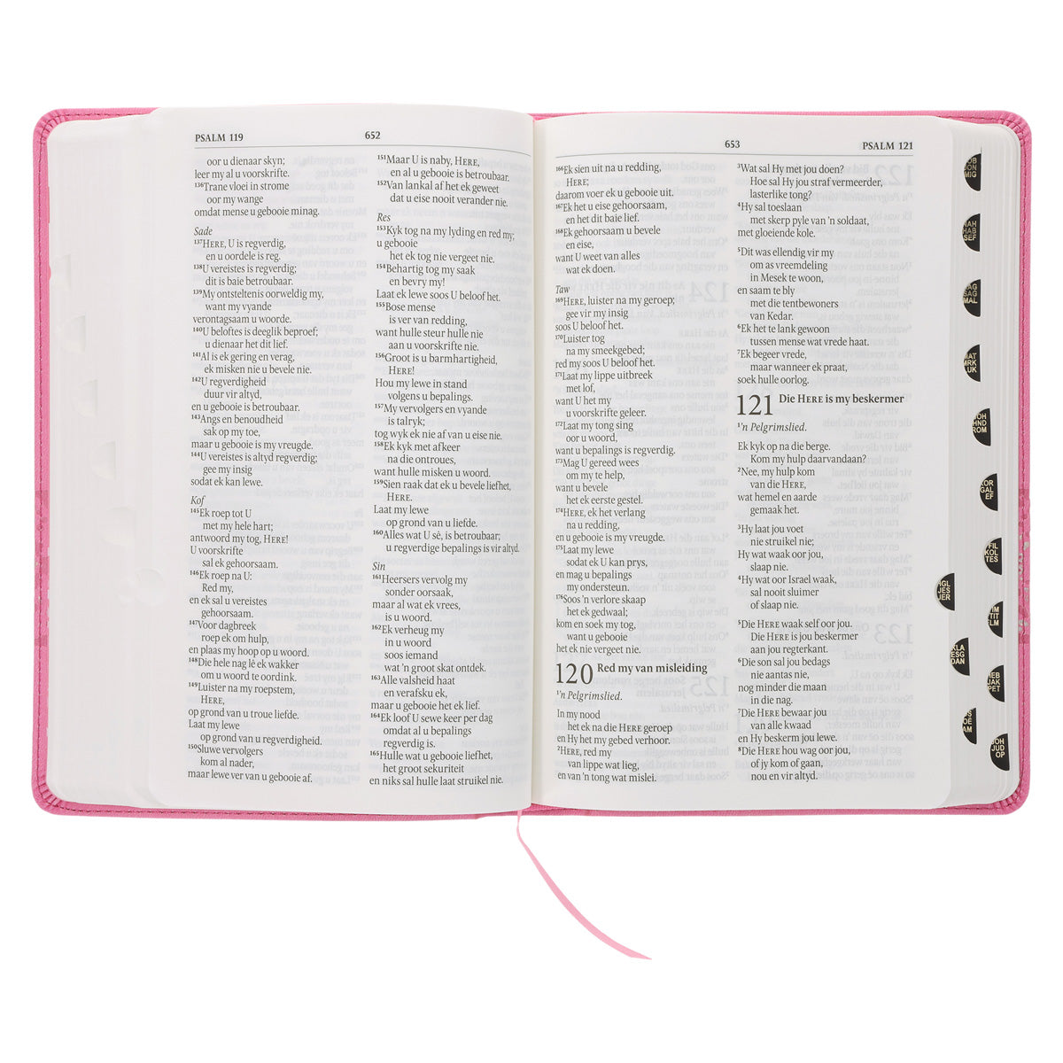 NLV Pienk Glinster Kunsleer Standaard Bybel Met Duimgrepe