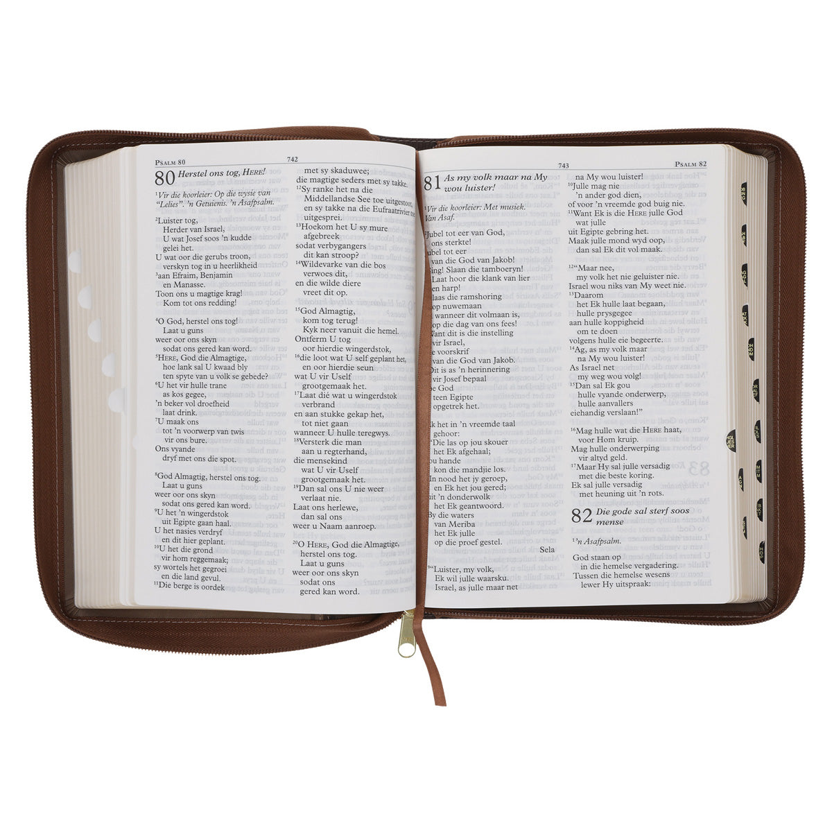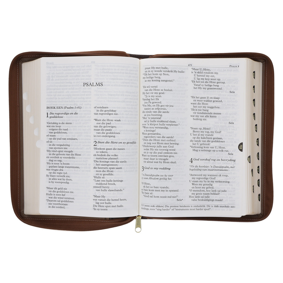 NLV Tweekleur Bruin Kunsleer Bybel Grootdruk Met Ritssluiter & Duimgrepe is backordered and will ship as soon as it is back in stock.