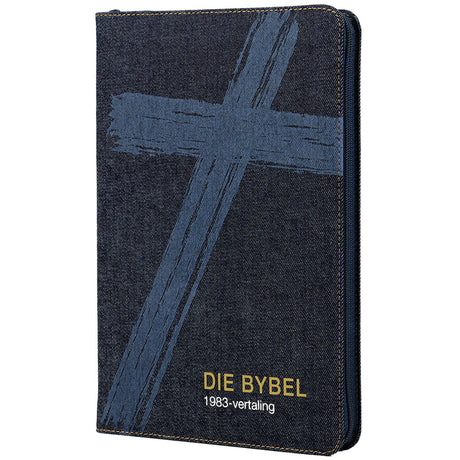 Afrikaans 1933/1953 Vertaling Kunsleer Denim Medium Naslaan Bybel Met Ritssluiter