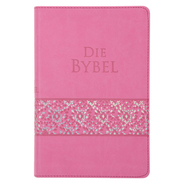 NLV Pienk Glinster Kunsleer Standaard Bybel Met Duimgrepe
