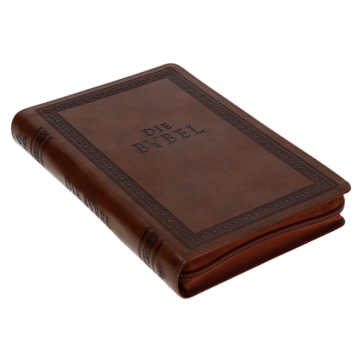 NLV Taan Bruin Kunsleer Standaard Bybel met Ritssluiter en Duimgrepe