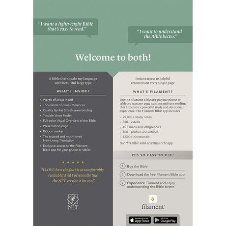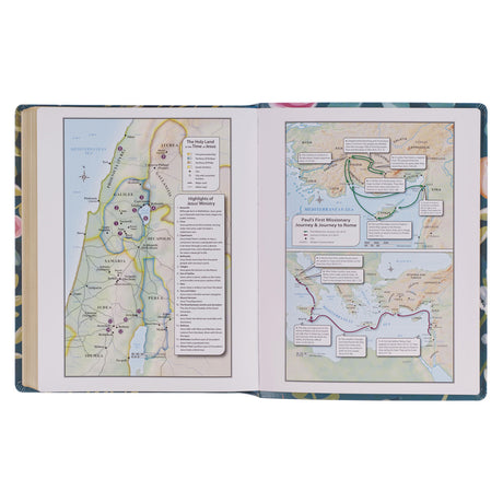 NLT Filament Thinline Reference Bible Large Print Red Letter Floral Leaf Teal (Imitation Leather)