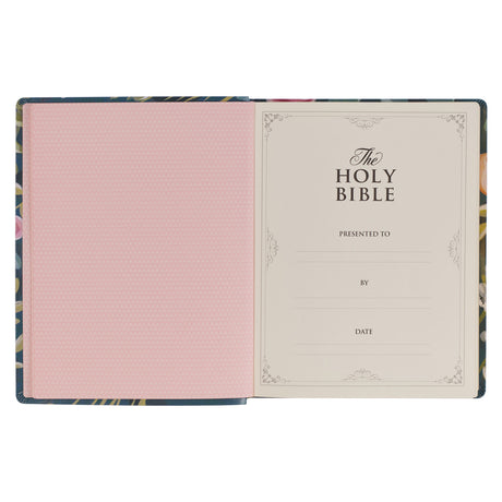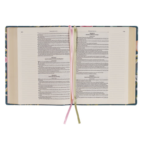 Regular price R699.00Unit price /Unavailable NLV Ligblou Met Pienk Blomme Kunsleer Standaard Bybel Met Duimgrepe