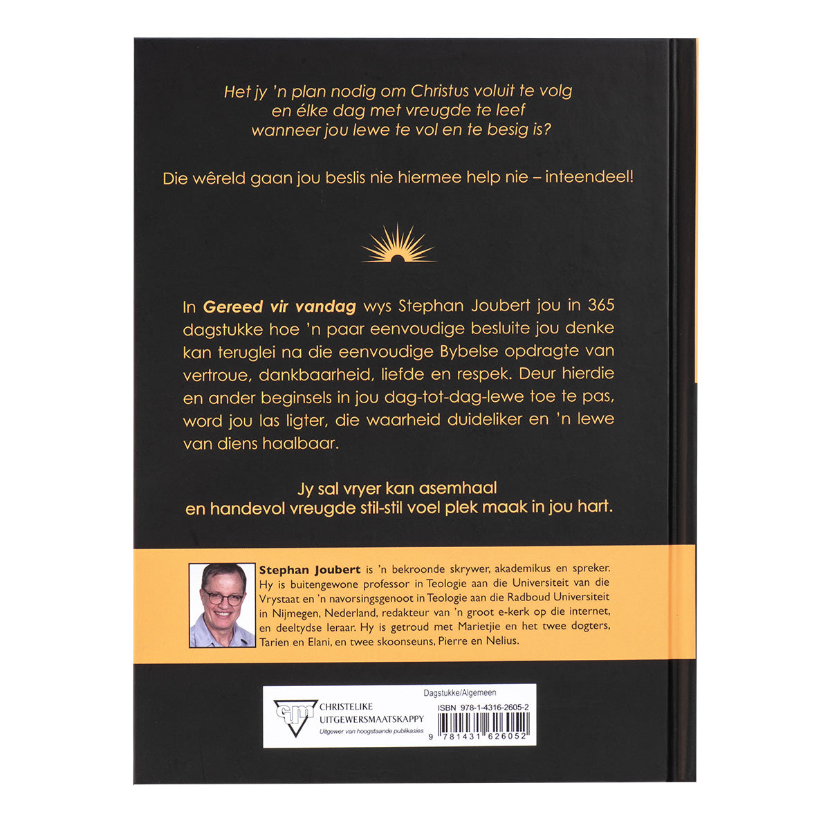 In Gereed vir vandag wys Stephan Joubert jou in 365 dagstukke hoe ’n paar eenvoudige besluite jou denke kan teruglei na die eenvoudige Bybelse opdragte van vertroue, dankbaarheid, liefhê en respek. Deur hierdie en ander beginsels in jou dag-tot-dag-lewe toe te pas, word jou las ligter, die waarheid duideliker en ’n lewe van diens haalbaar.