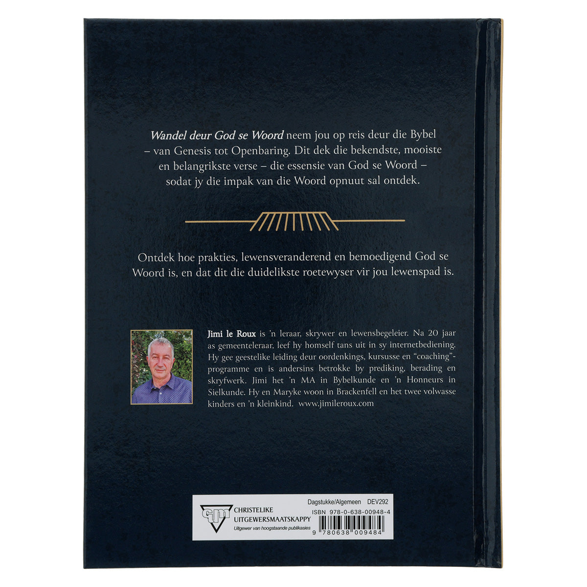 Die 366 oordenkings in Wandel deur God se Woord neem jou op reis deur die Bybel – van Genesis tot Openbaring. Dit dek die bekendste, mooiste en belangrikste verse – die essensie van God se Woord – sodat jy die impak van die Woord opnuut sal ontdek.