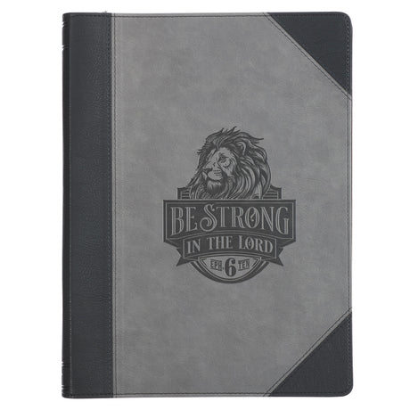 Be Strong in the Lord Grey and Black A4 Faux Leather Journal with Zip