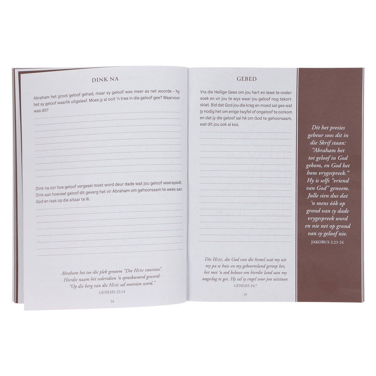 Met die vrae vir dieper denke, gebedsriglyne, inspirerende aanhalings en bypassende verse uit die Bybel sal hierdie gebedsjoernaal jou help om die man van God te word wat jy bedoel is om te wees.