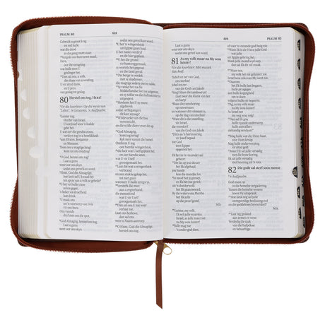 NLV Taan Bruin Kunsleer Standaard Bybel met Ritssluiter en Duimgrepe