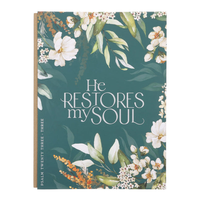 This stylish journal is a fitting gift for a special friend, family member or co-worker. Make your thoughts come to life on the pages of the He Restores My Soul Quarter-Bound Hardcover Journal as you are reminded that you can lay all your burdens at His feet!
