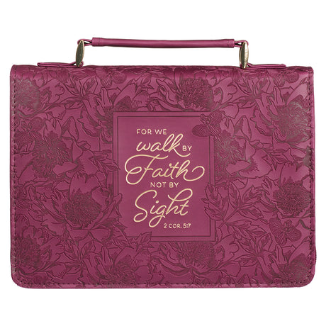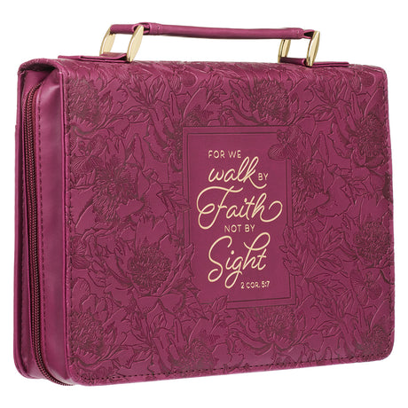 Walk By Faith Burgundy Faux Leather Bible Bag - 2 Corinthians 5:7