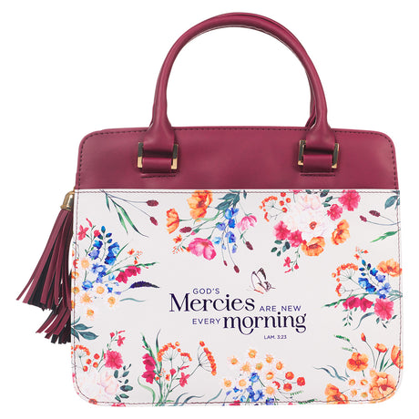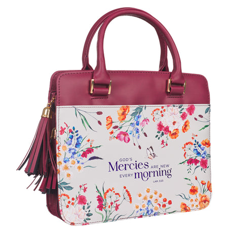 In stockRegular price R349.00Unit price /UnavailableThe Lord's Mercies are New Every Morning Purple Floral Faux Leather Bible Bag