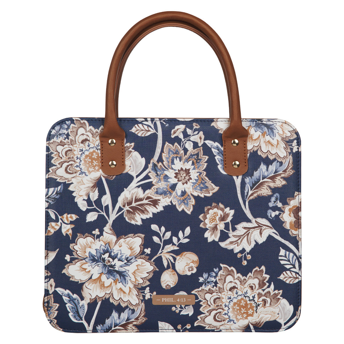 I Can Do All Things Through Christ Who Strengthens Me Navy & Brown Faux Leather Bible Bag