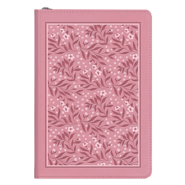 NLT Pink Floral Faux Leather Compact Bible with Zip