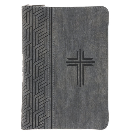 KJV Grey Cross Faux Leather Compact Large Print Bible with Zip