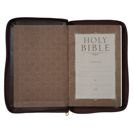 NLT Brown Faux Leather Flexcover Compact Bible With Zip