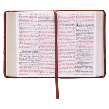 KJV Brown Faux Leather Compact Bible Large Print Red Letter