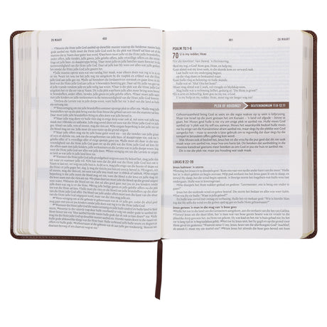 In stockSale price R439.00 Regular price R599.00Unit price /Unavailable Afrikaans 2020 Vertaling Bruin Kunsleer Bybel Goud-Op-Snee Grootdruk Met Duimgrepe