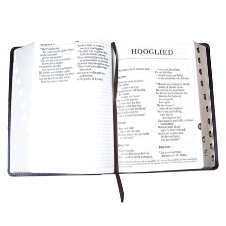 In stockSale price R339.15 Regular price R399.00Unit price /Unavailable Afrikaans 1933/1953 Vertaling Bruin Egte Leer Naslaan Bybel Met Duimgrepe