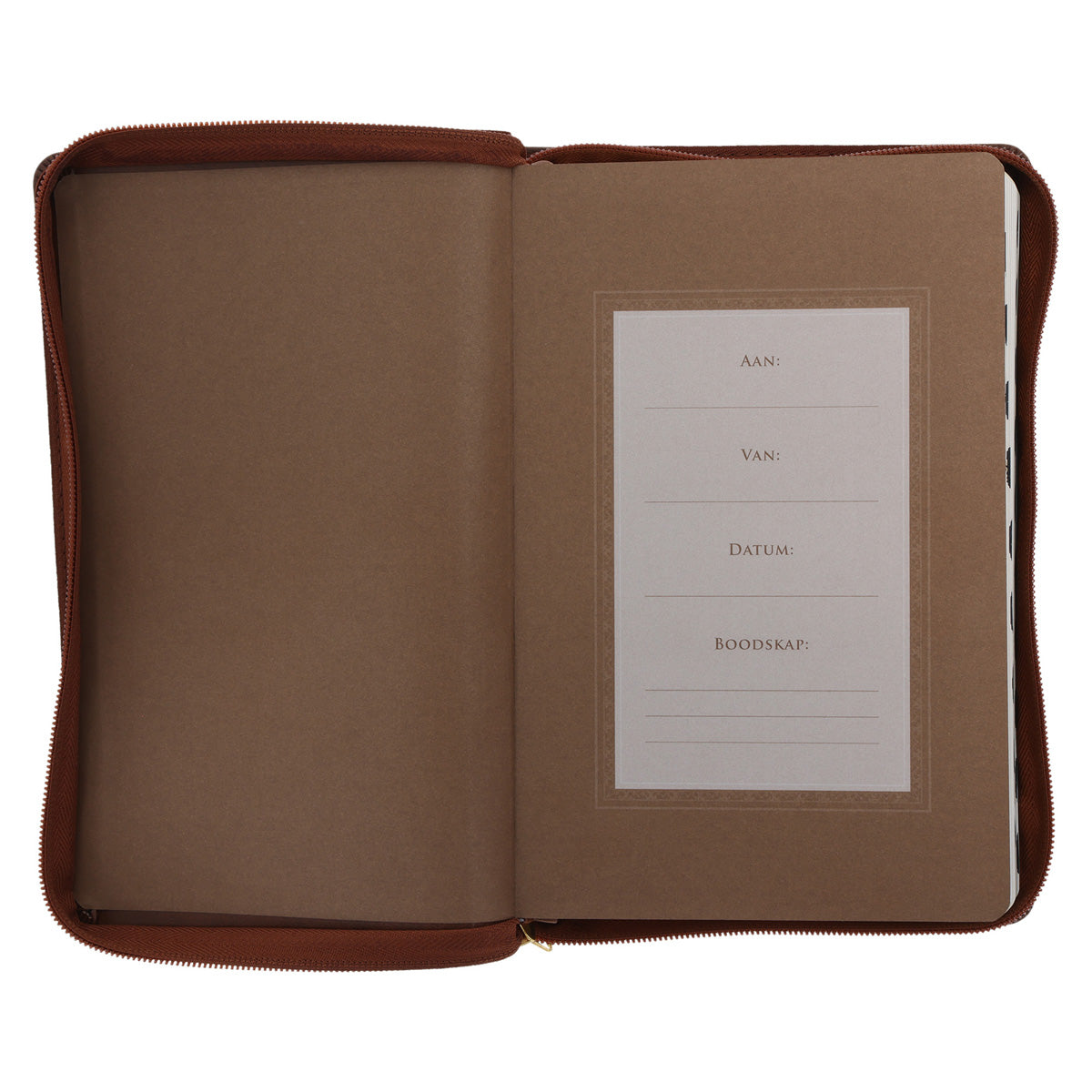 NLV Taan Bruin Kunsleer Standaard Bybel met Ritssluiter en Duimgrepe