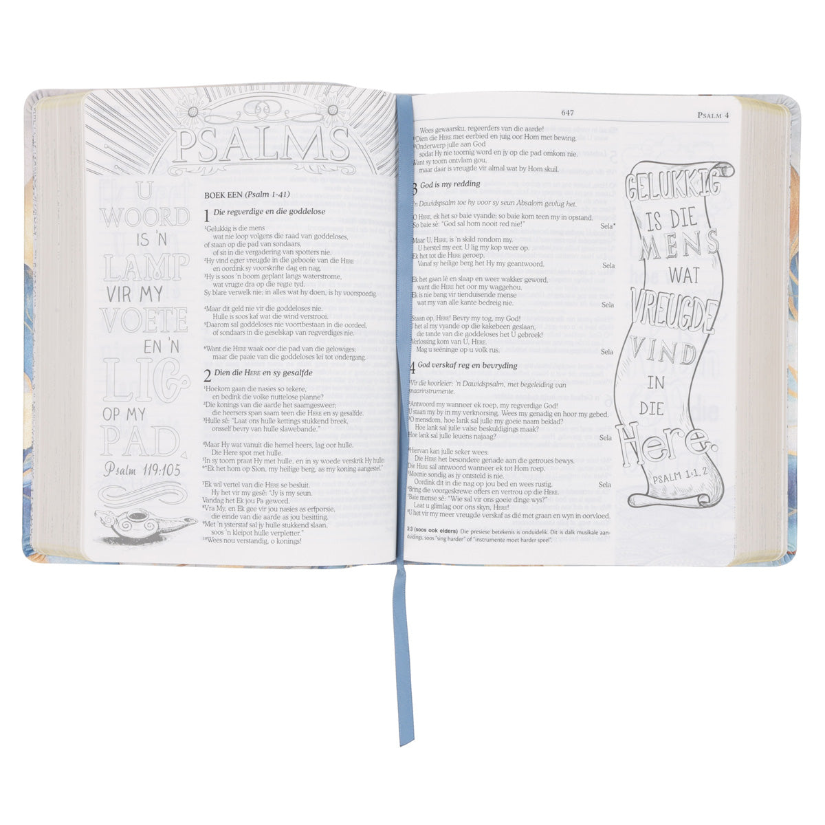 Ervaar vrede, vernuwing en inspirasie in jou geloofslewe wanneer jy stil word met die Woord van God en nadink oor die waarhede daarin terwyl jy die woordkuns-verse inkleur.
