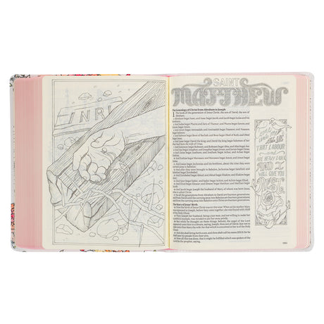 NLT Dusty Pink Blossoms Imitation Leather Filament Wide Margin Bible