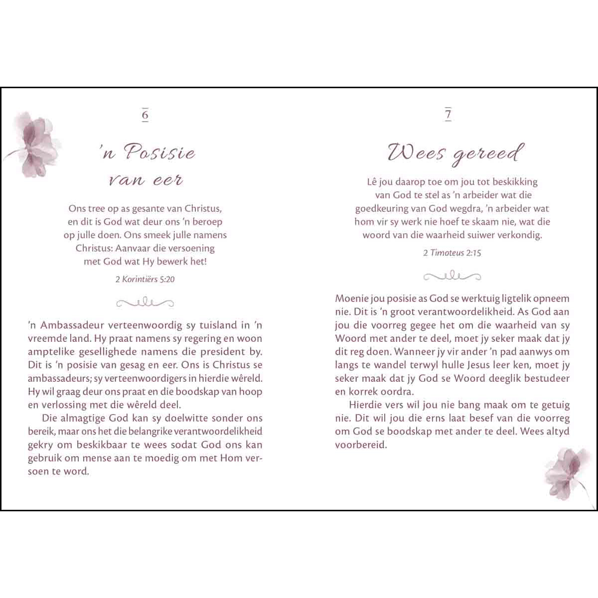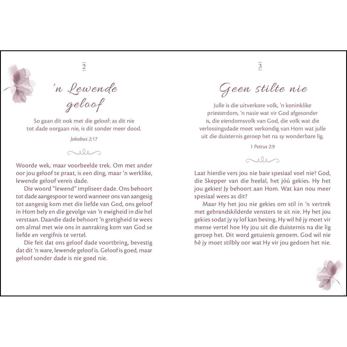 Die handige sakpas-formaat laat vroue toe om enige tyd en enige plek stil te word en tyd saam met Hom deur te bring.