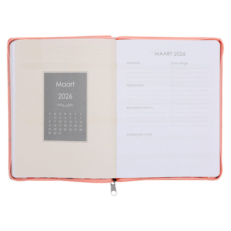 In stockRegular price R349.00Unit price /Unavailable2026 18-Maande Dagbeplanner vir Vroue - Sterkte en Eer - Kunsleer met Rits