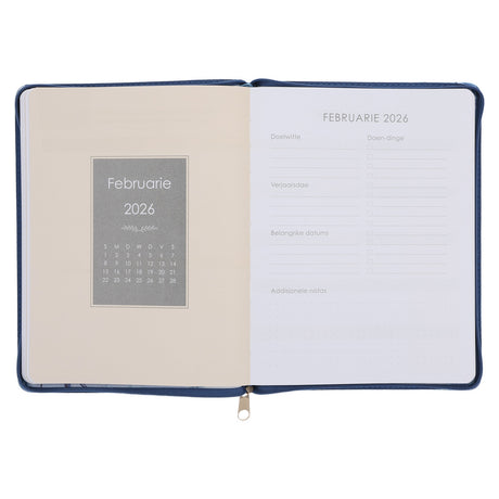 2026 18-Maande Dagbeplanner vir Vroue - Ek Weet Wat Ek vir Julle Beplan - Kunsleer met Rits