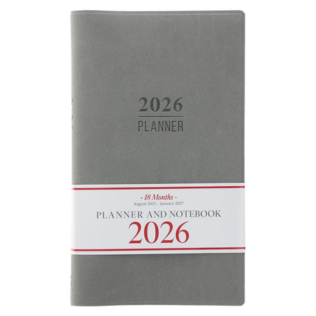 2026 Diary - 18-Month Planner and Notebook - Grey - Imitation Leather