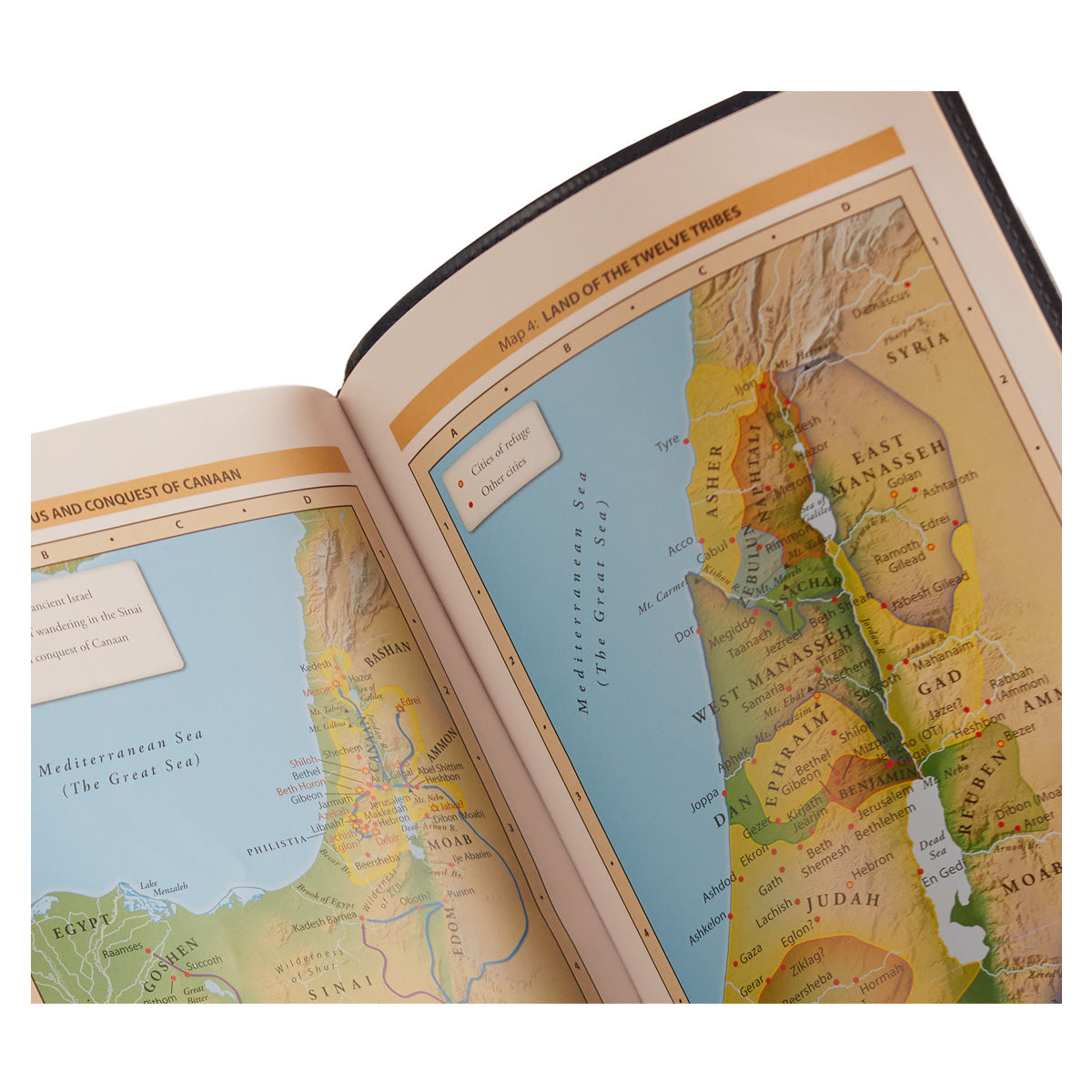 • Full color maps show the layout of Israel and other biblical locations for better context