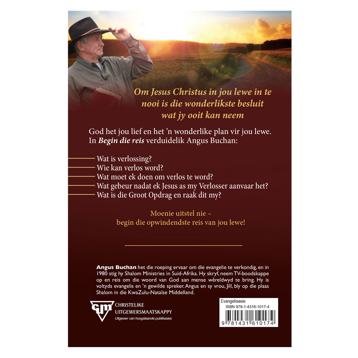 In Begin die reis sal lesers weer bewus word van God se perfekte plan vir verlossing deur Jesus Christus. Op ʼn eenvoudige manier verduidelik Angus Buchan die probleem van sonde en God se plan om ons verhouding met Hom te herstel.