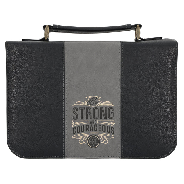 Be Strong and Courageous Black and Grey Faux Leather Bible Bag - L is backordered and will ship as soon as it is back in stock.