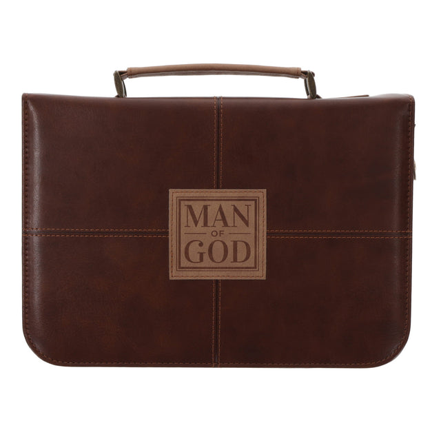 Man of God Brown Faux Leather Bible Bag - L is backordered and will ship as soon as it is back in stock.