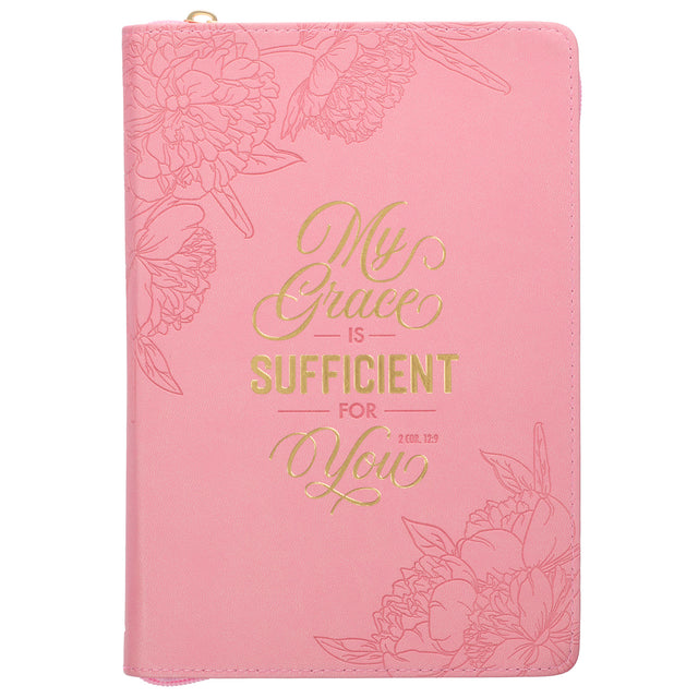 My Grace is Sufficient for You Pink Faux Leather Journal with Zipped Closure