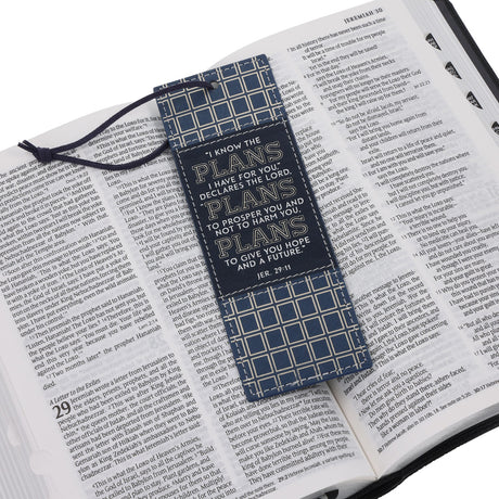 I Know the Plans I Have for You Blue Grid Faux Leather Bookmark