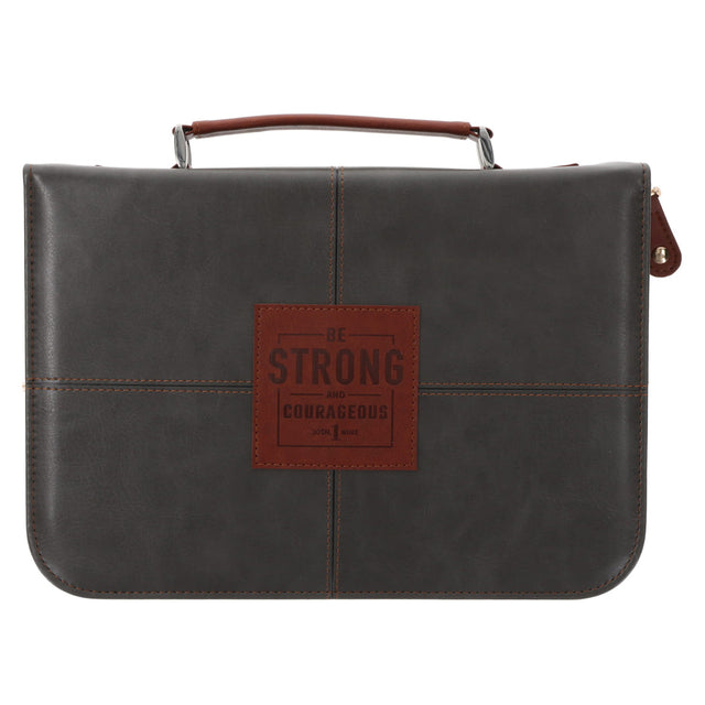 Be Strong and Courageous Grey Faux Leather Bible Bag - L is backordered and will ship as soon as it is back in stock.