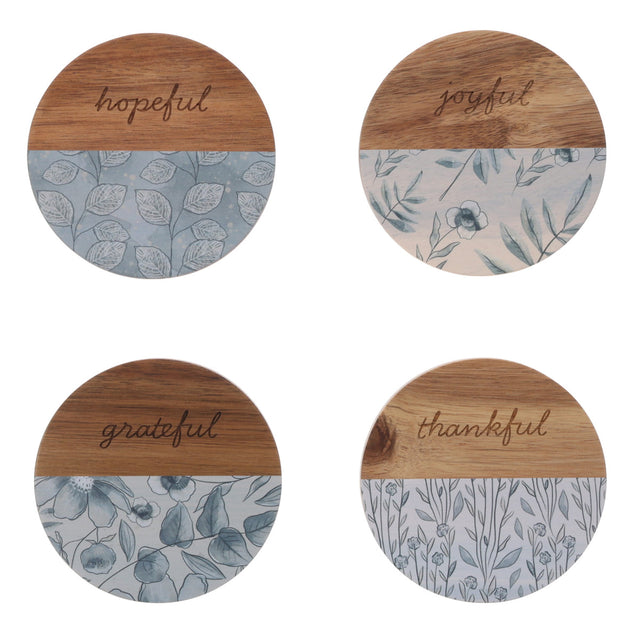Grateful, Hopeful, Thankful and Joyful Four-Piece Wooden Coaster Set