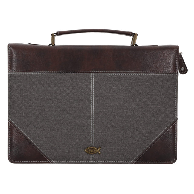 Metal Fish Jesus Badge Faux Leather Bible Bag - L is backordered and will ship as soon as it is back in stock.