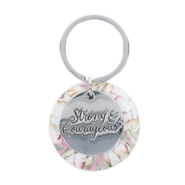 Strong and Courageous Metal and Faux Leather Key Ring